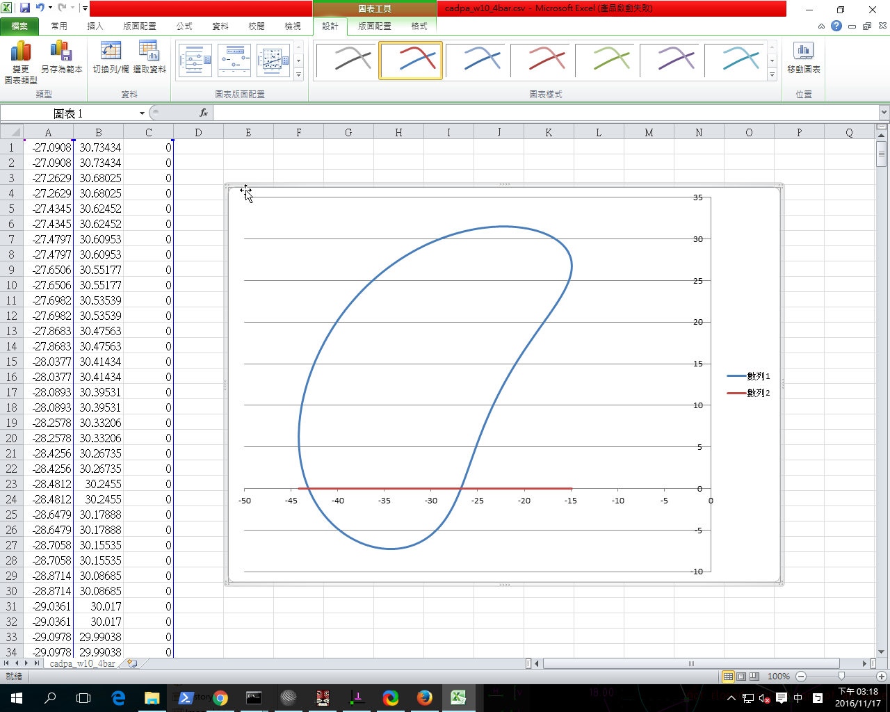 將所得到的點座標 .csv 以 Excel 畫圖, 得到: