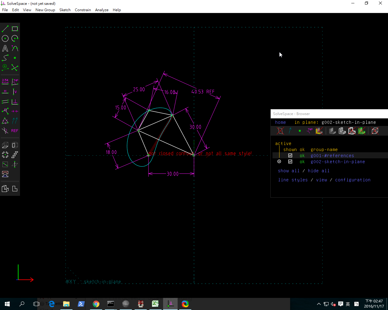 直接利用 Solvespace Analyze-Trace Point-Stop Trace 得到下列繞行路徑: